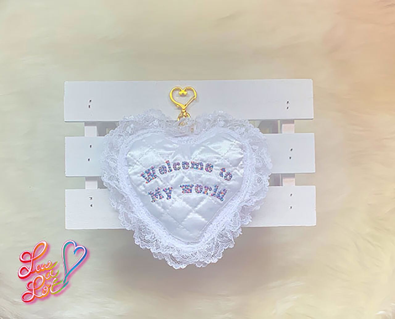 ぷっくりハートの刺繍ロゴキーホルダー(white)