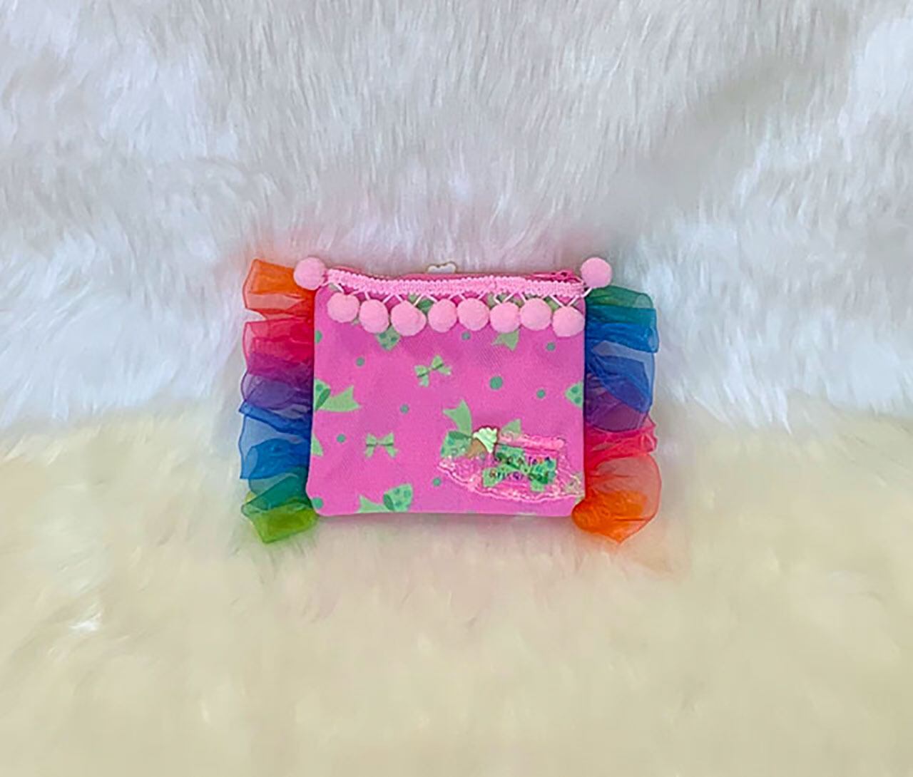 (Rainbow frill ポーチ)シリーズはひとつひとつ丁寧にハンドメイドで製作し、ひとつひとつ装飾品が違うので、世界にひとつだけ、オリジナルの一点ものです♪