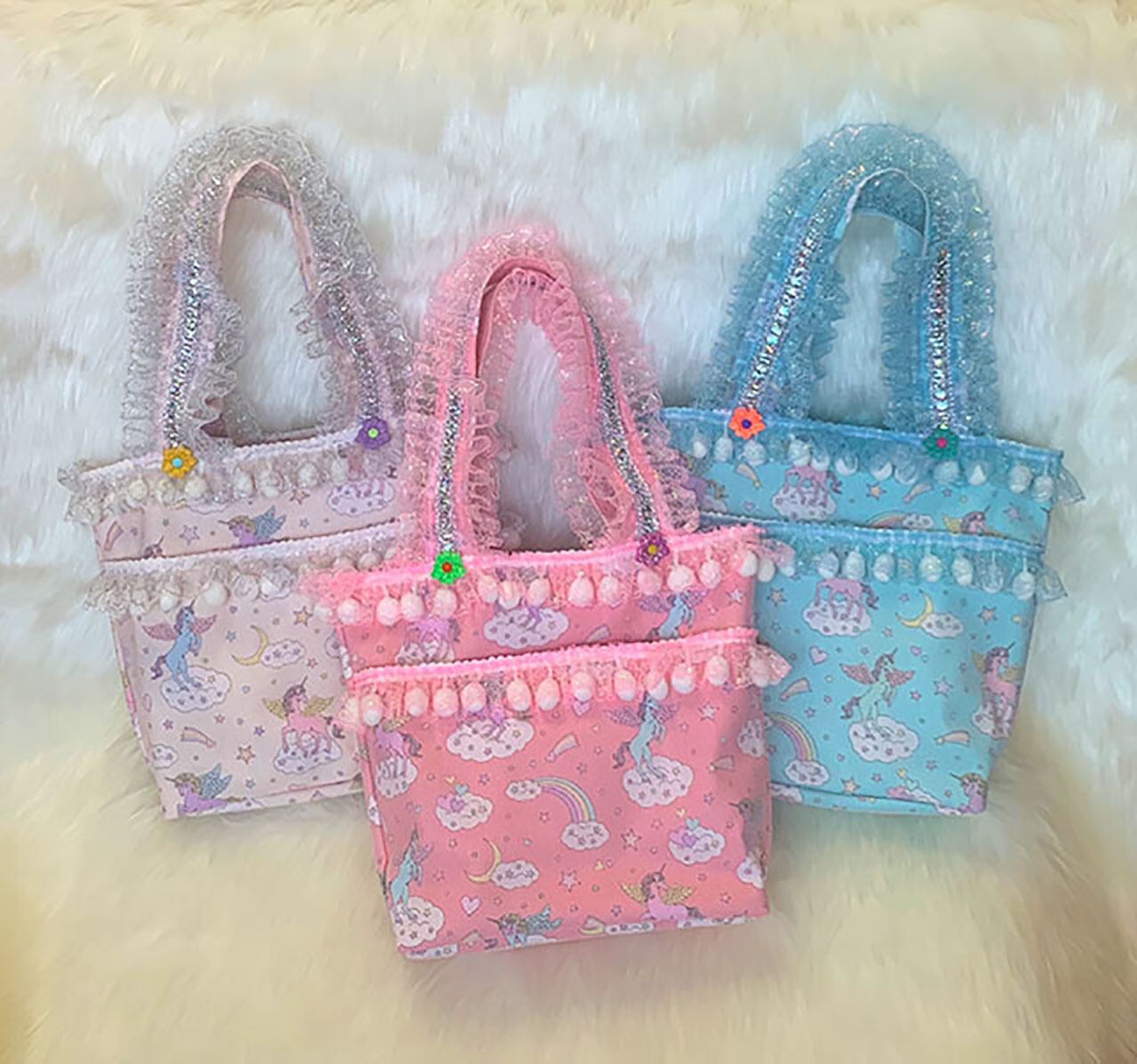 ポッケ付きフリルトートバッグ(ユニコーン/blue)