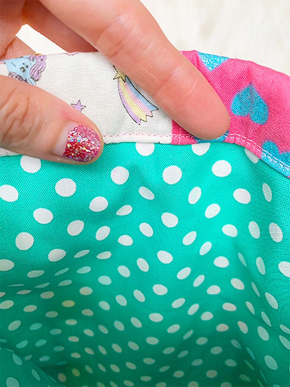 パッチワークのつなぎ目も活かしつつ、芯地も入れているのでしっかりとした手触りになっています。