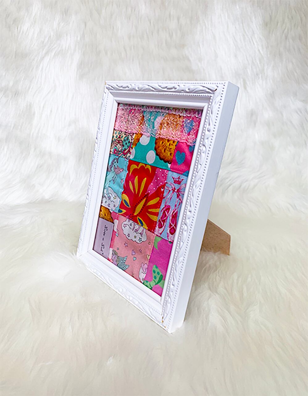 よりパッチワークを身近に感じて頂けるようにフレームの中いっぱいに可愛い柄を詰め込みました。