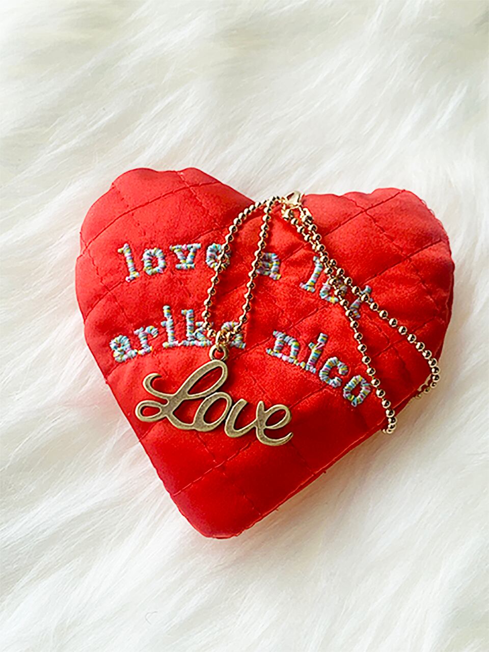 郵送の際はlove a lot♡刺繍ロゴ入りハート型ミニクッションと一緒にお届けします。