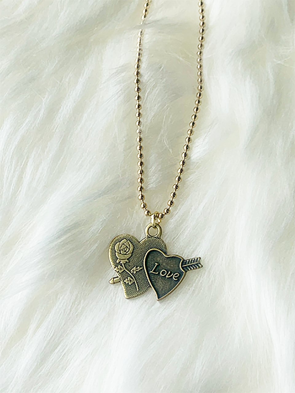 モチーフプレートネックレス(ダブルハートアロー/ロング)