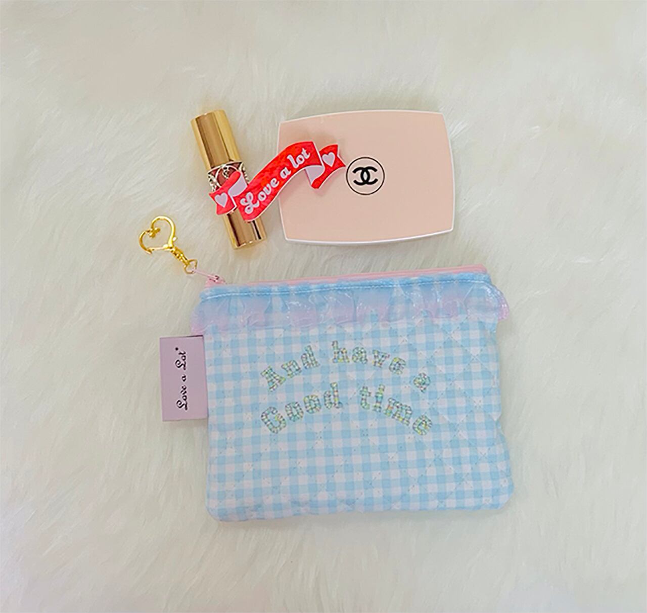 ギンガムチェックのキーホルダーポーチ(blue③)