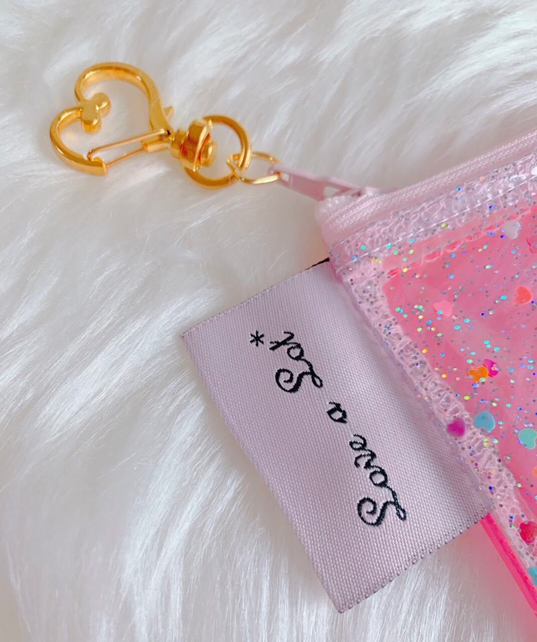 【完売再販】貝殻スパン入りキラキラビニールのキーホルダーポーチ(♡スパンコール)②