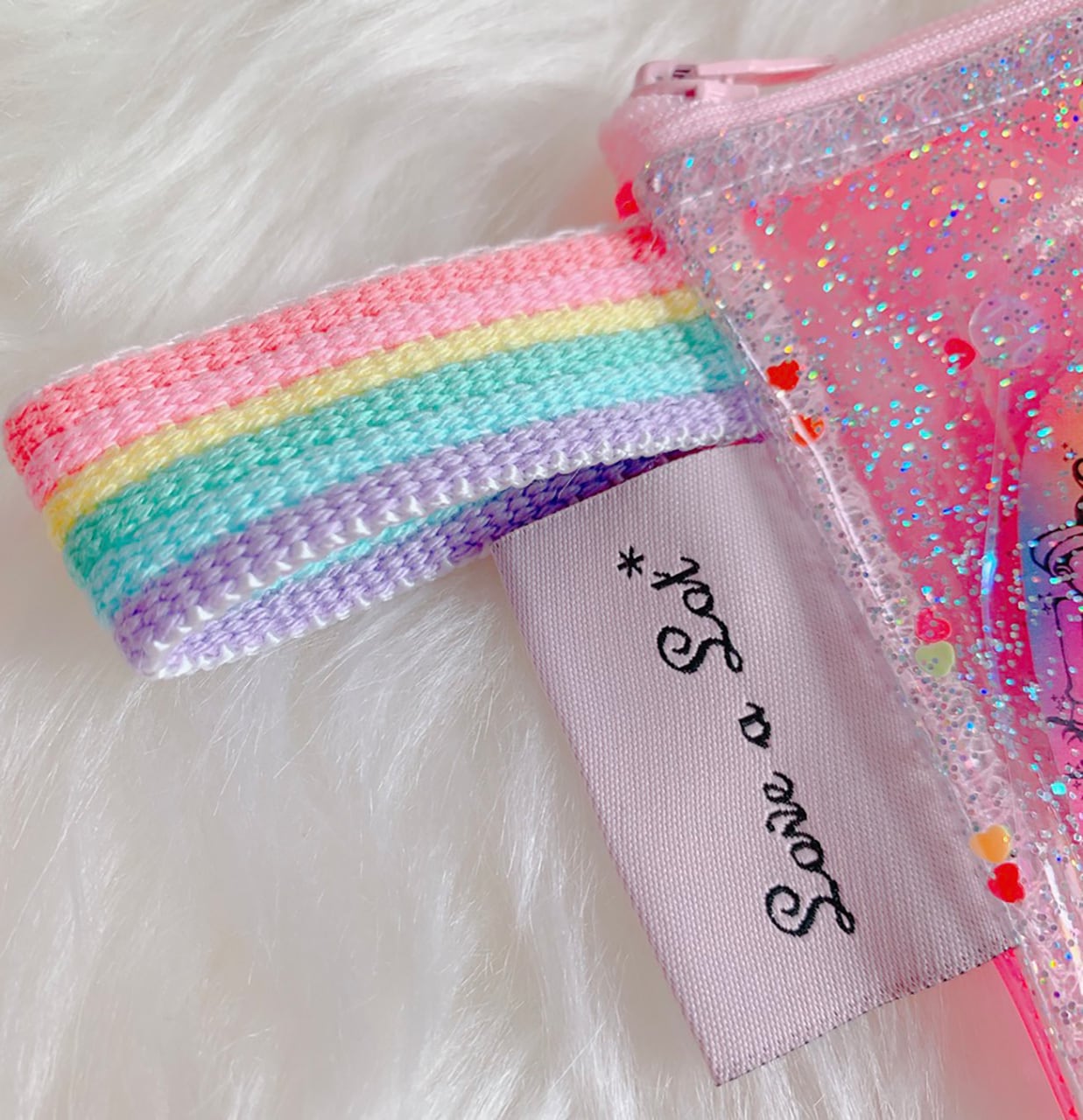 キラキラスパンコールにたくさんのかわいい夢をぎゅっと詰め込んだドリーミーなポーチです。