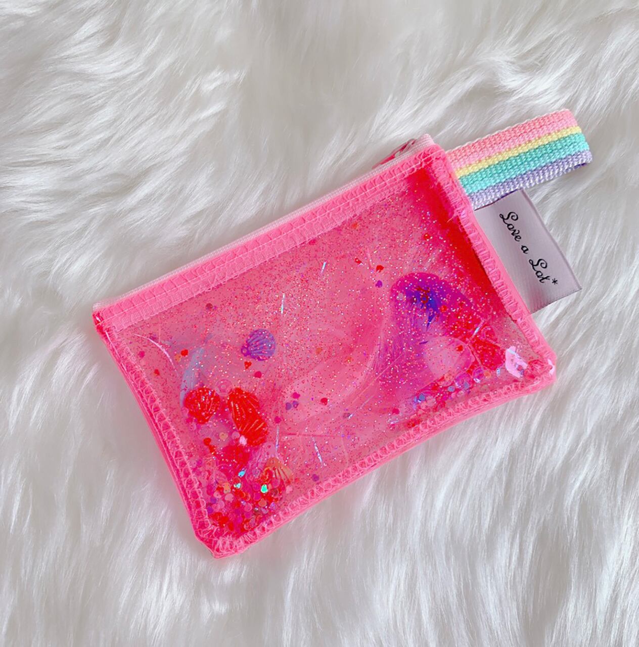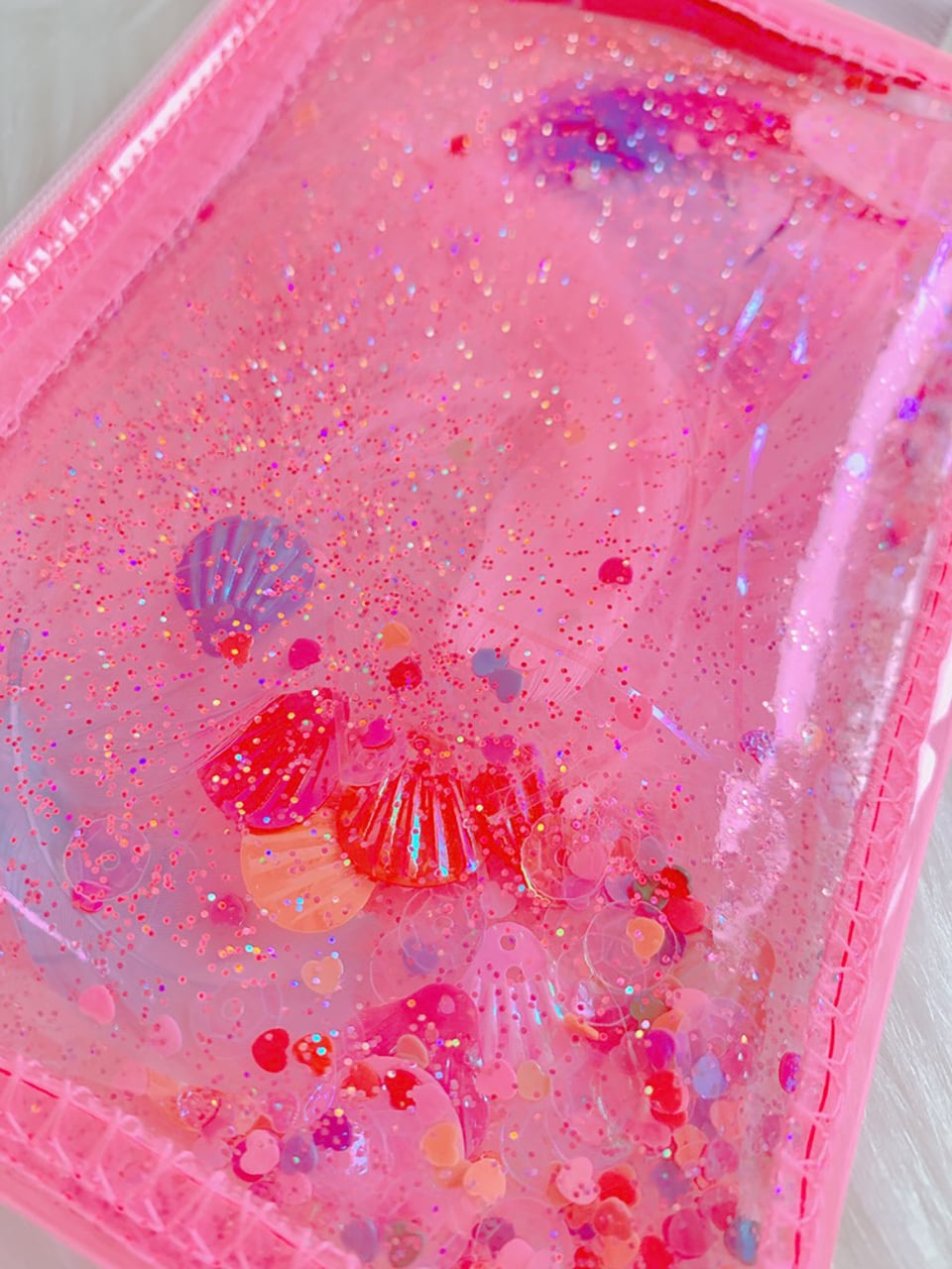 【完売再販】貝殻スパン入りキラキラビニールの持ち手つきポーチ(♡スパンコール)①